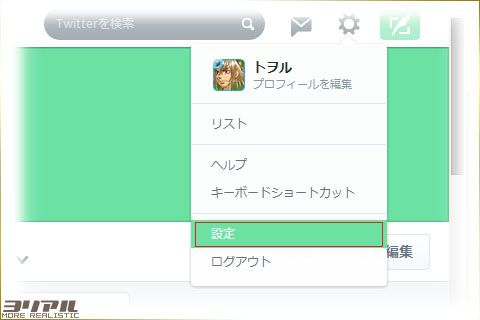 右上に歯車のマークがあるのでそこから「設定」へ。